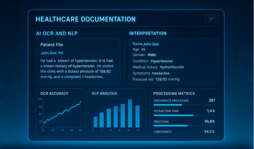 To address these challenges, TechCorp implemented an advanced AI-driven document processing system built on natural language processing (NLP) and optical character recognition (OCR) technology. Unlike traditional OCR tools, this AI system could interpret context, understand clinical terminology, categorize documents automatically, and extract structured data accurately. The AI learned from existing medical records, adapting to abbreviations commonly used by clinicians, identifying key medical terms, and recognizing patterns across different types of documents.